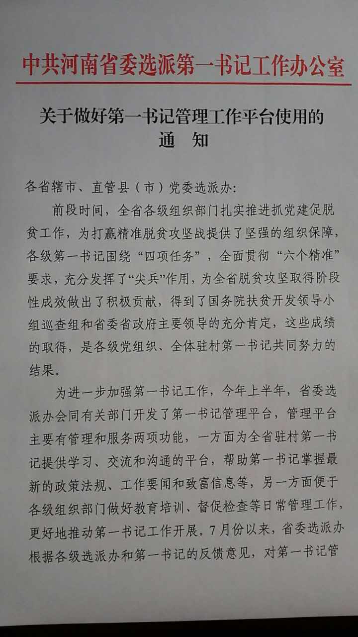 【学习园地】关于做好第一书记管理工作平台使用的通知