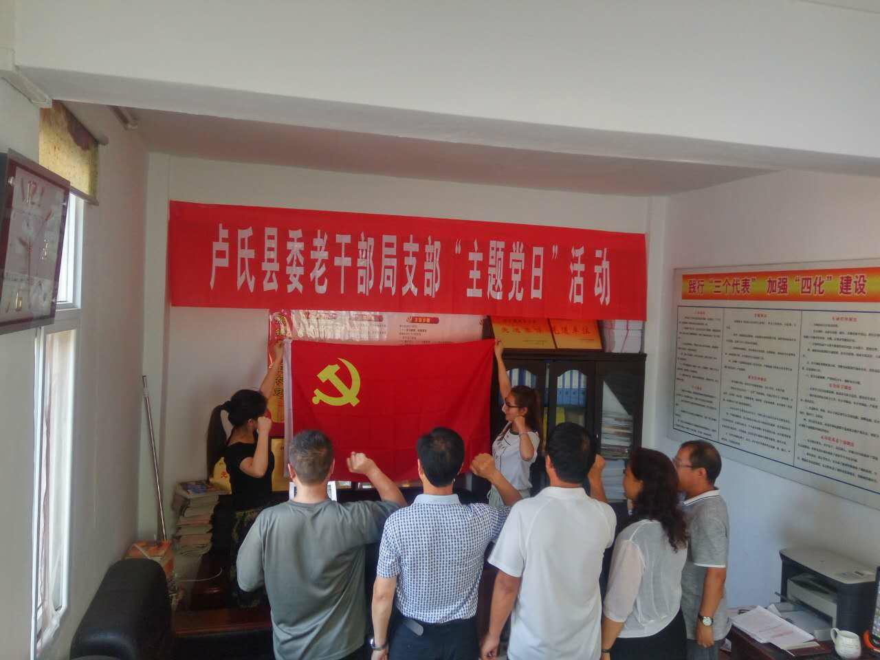 按照卢组字〔2017〕60号文件关于在全县党政机关推行“主题党日”活动的要求,县委老干部局认真落实,制定八月份本单位“主题党日”活动实施方案。现将八月份“主题党日”活动开展情况汇报如下: